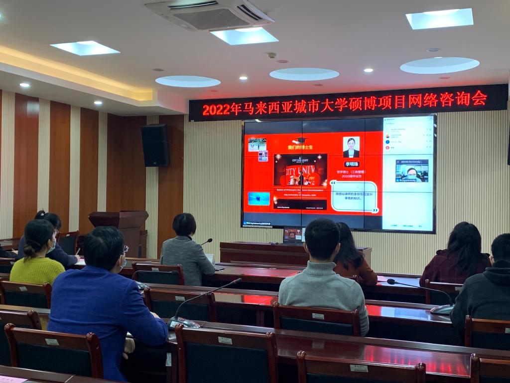 为加深我校教师对海外攻读硕博学位项目的了解,解答教师关于攻读学位的疑问,4月20日上午,我校国际交流处、马来西亚城市大学国际招生办事处联合举办了“马来西亚城市大学硕博项目线上咨询会”。