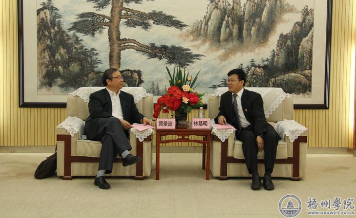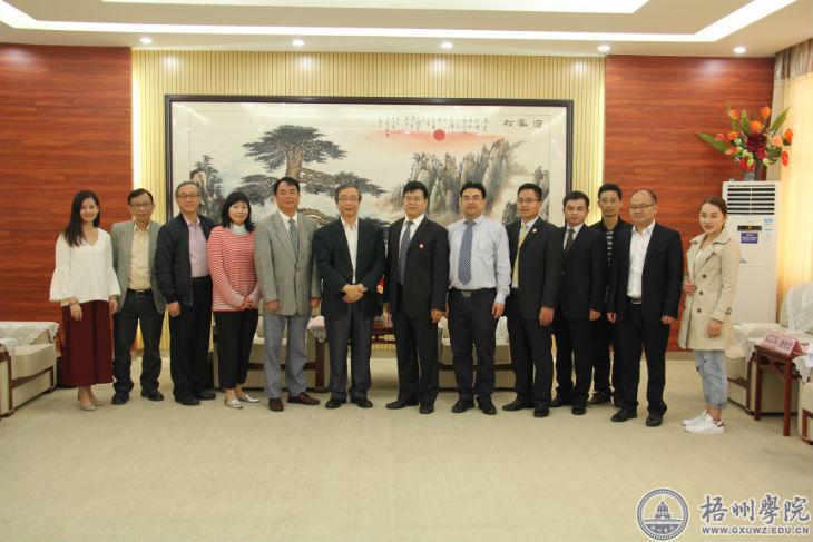 4月10日下午,香港能仁专上学院校长黄景波与泰国大学、香港职业训练局、广西留学人员商业届人士联合会代表组成的代表团到访我校。