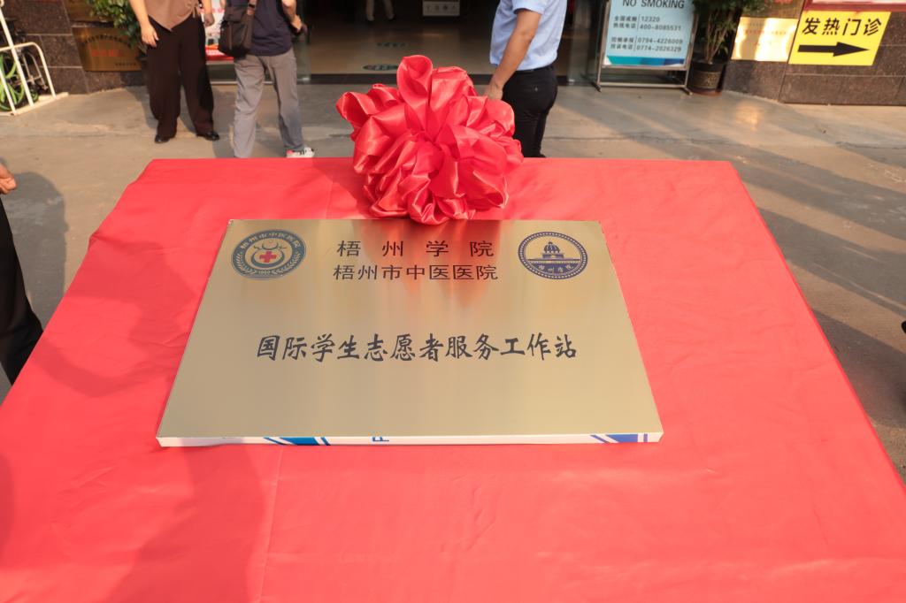 2023年5月18日下午,梧州学院和梧州市中医医院共建的国际学生志愿者服务工作站正式在中医医院揭牌,成为梧州市首个卫生系统和教育系统共建的国际学生志愿者服务工作站。梧州市委外事办、梧州市卫生健康委员会、梧州市中医医院、梧州学院相关领导以及国际学生代表出席了揭牌仪式。